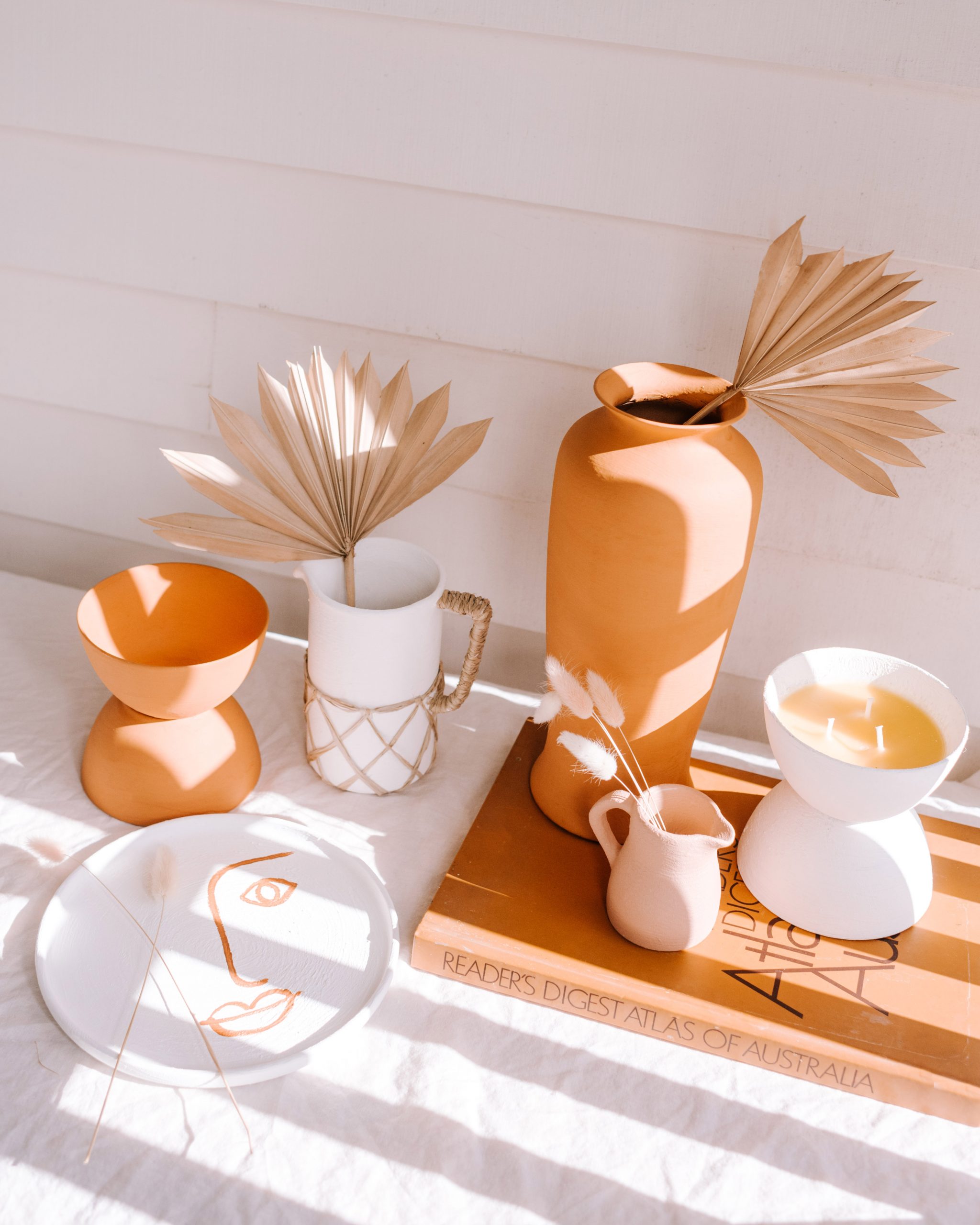 OK so I have to admit that I stuck to my old ways with these projects and used a lot of paint to overhaul them. But as I always say, stick to what you know! Actually, I never say that but you know what I mean. I ended up making two structural vessels (one being a candle), a painted decorative plate (for jewellery storage or for the wall) a raffia embellished jug and two simple painted vases. It’s been a fun week!
