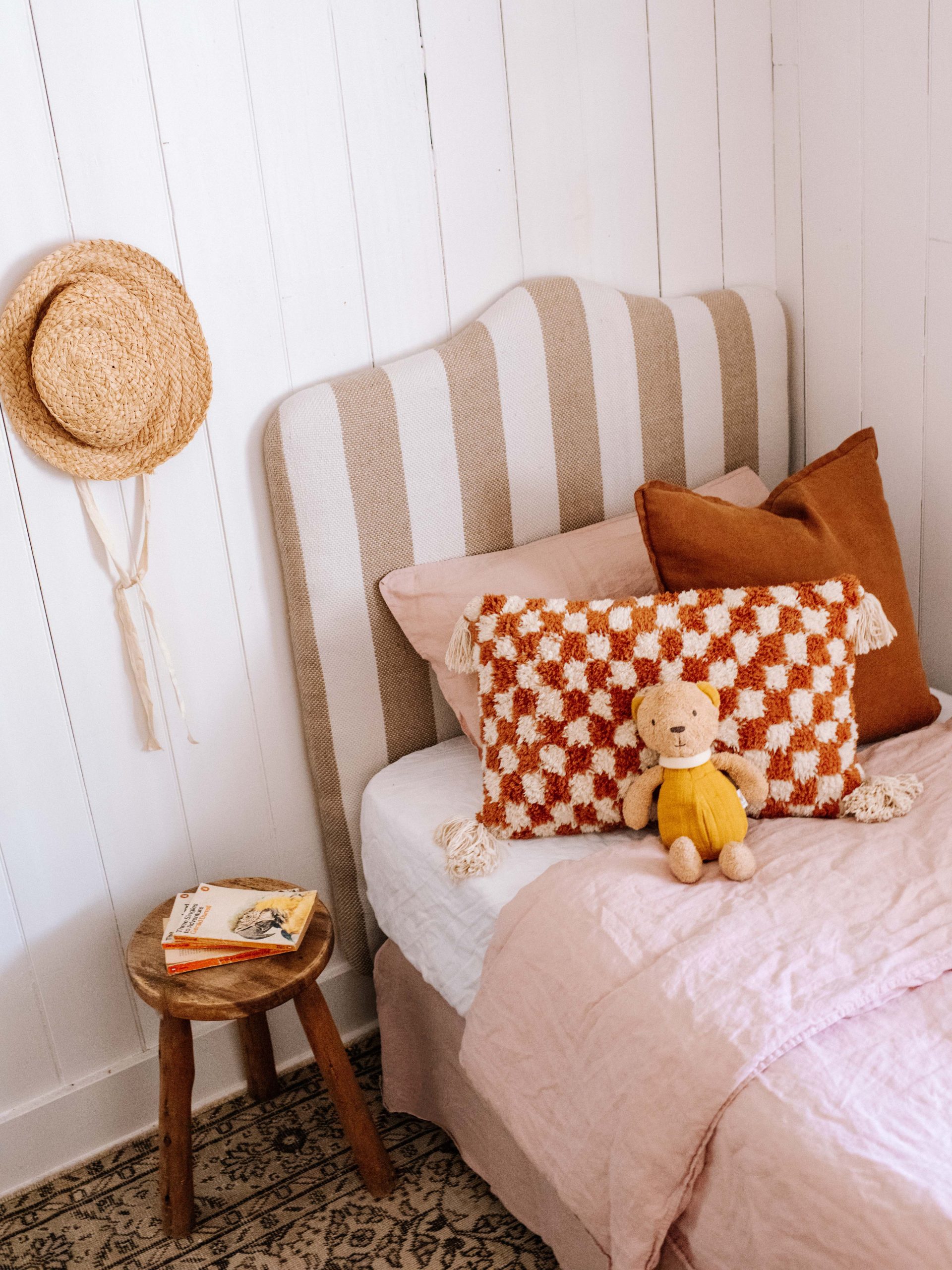 When I saw a bright pink kids headboard sitting on the side of the road, initially it was a NO from me, but then I remembered I’d wanted to make a little bed for my niece who has started staying over, and thought maybe I could rescue this piece. Read on to see how to make an upholstered kids headboard.