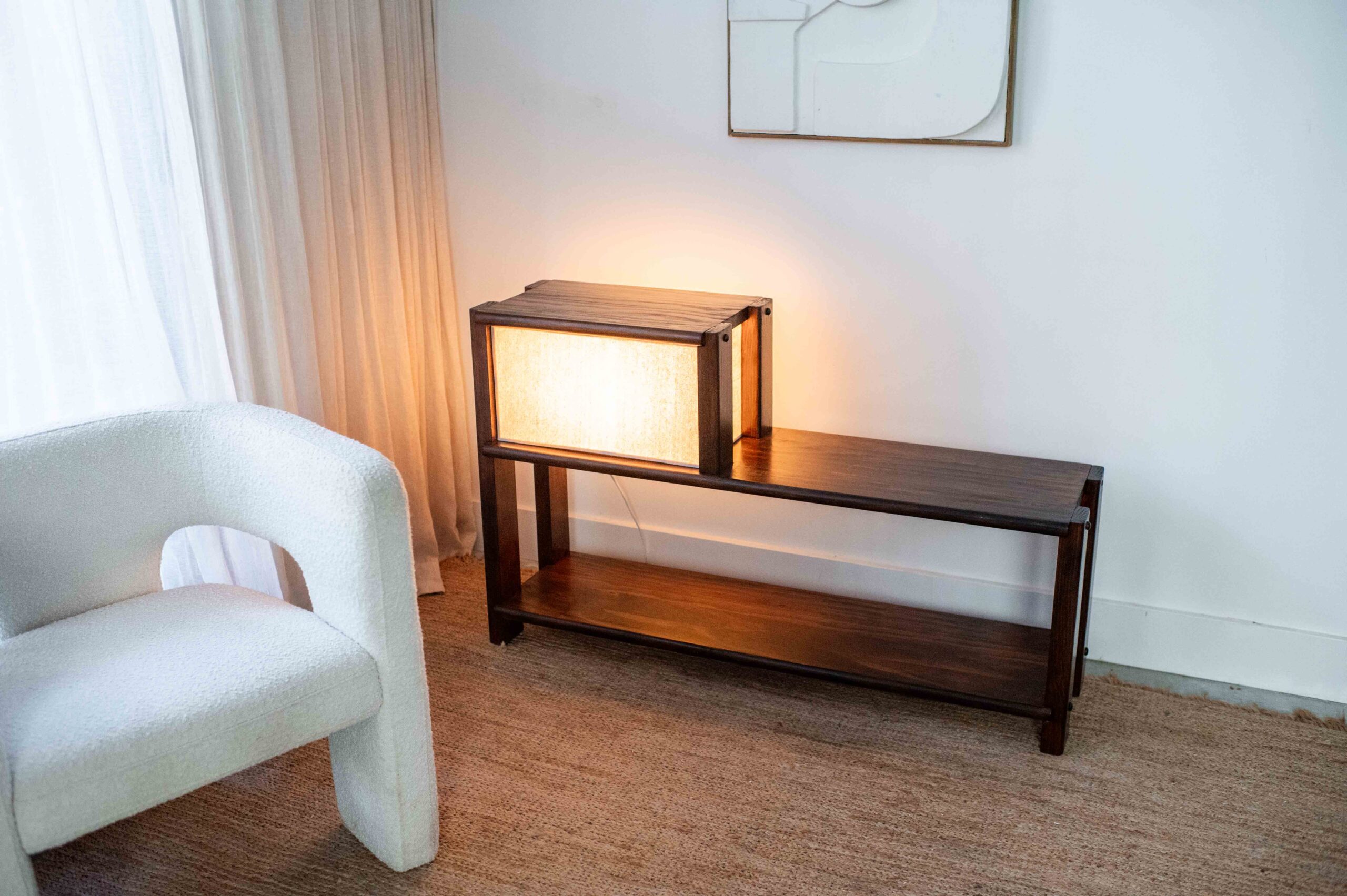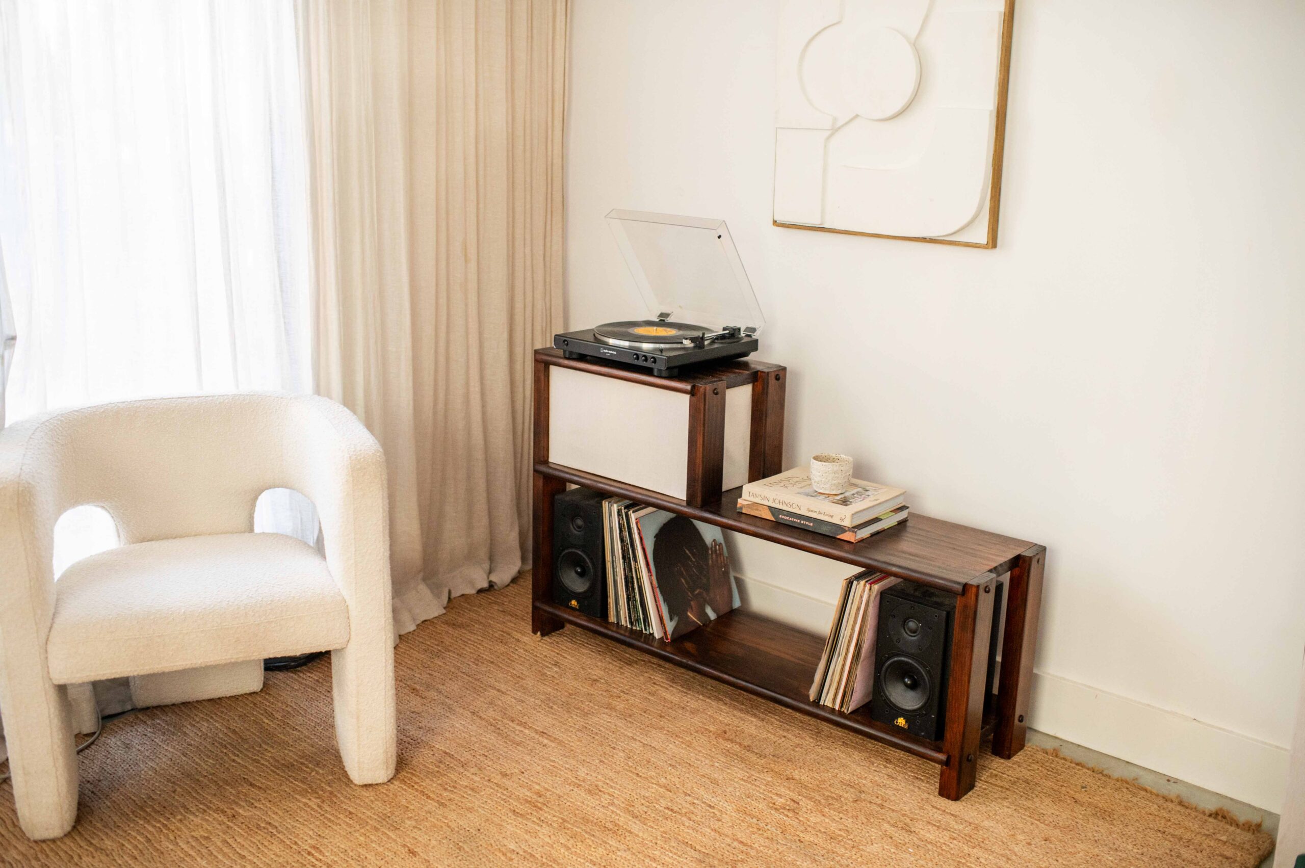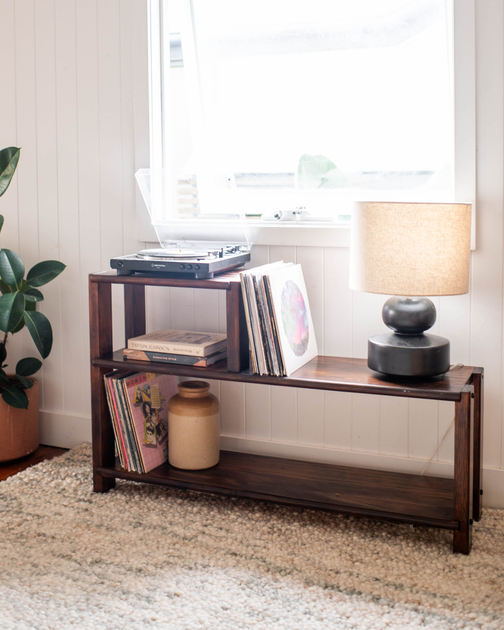 Here it is all finished! It’s the perfect spot for our record player and I love how it lights up the room.